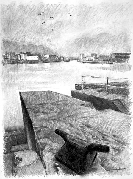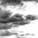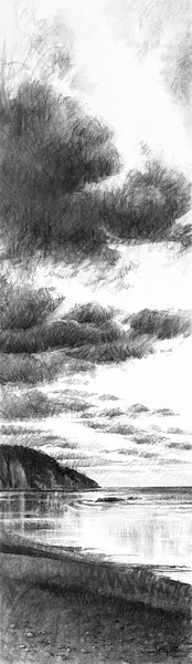Dessins au fusain de paysages du littoral normand sur papier Canson blanc 50X65 cm.