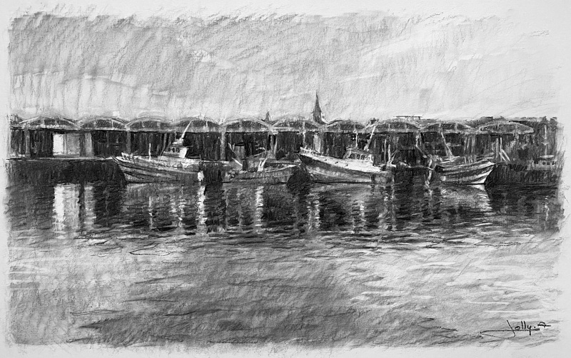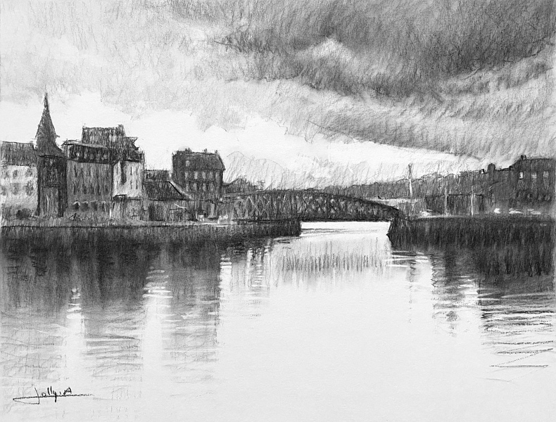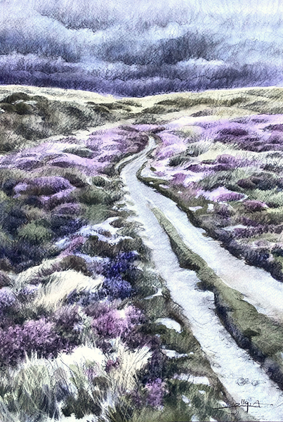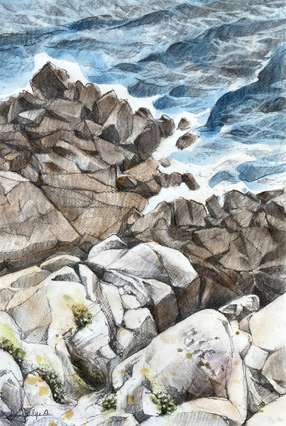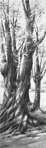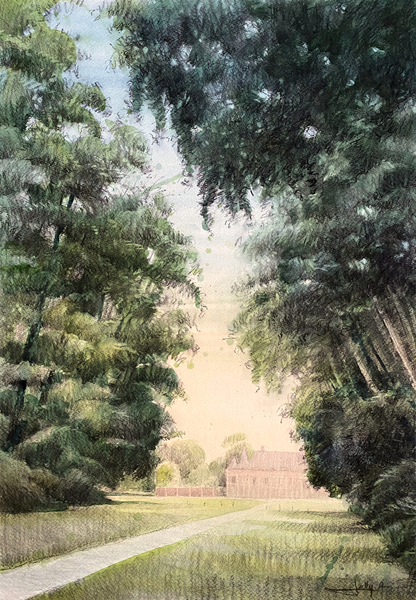 Dessins au fusain sur aquarelle, sur papier aquarelle 300g/m2