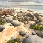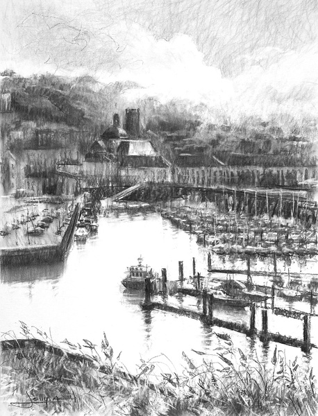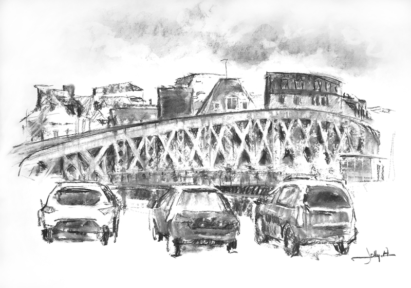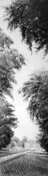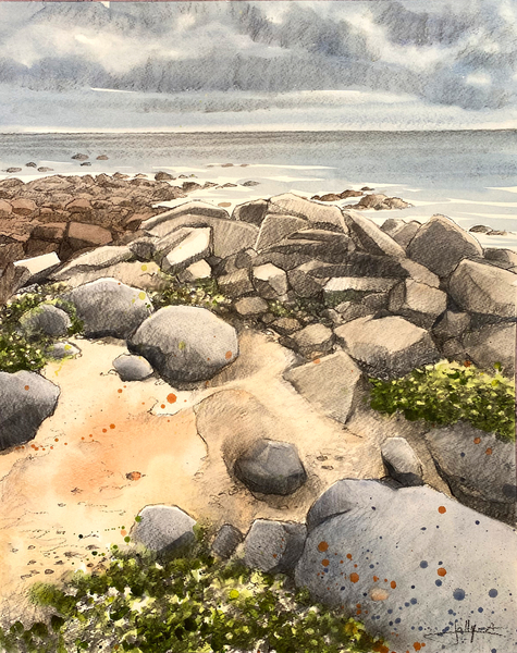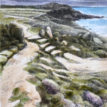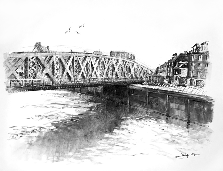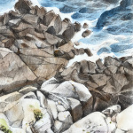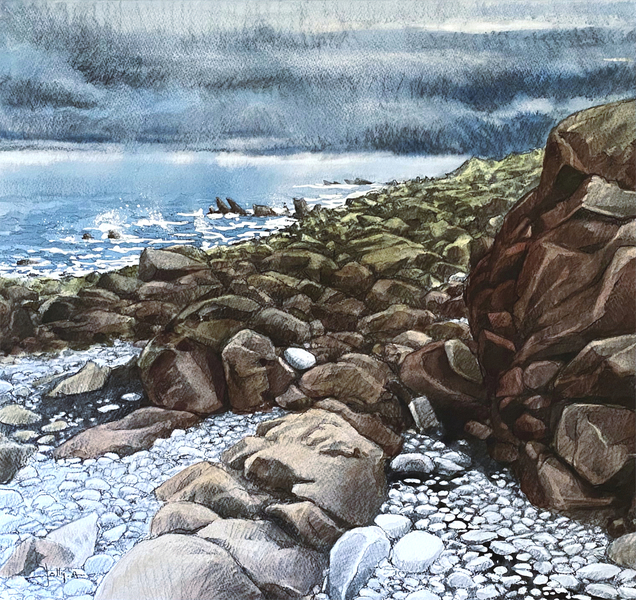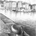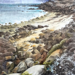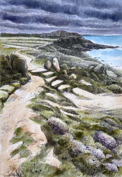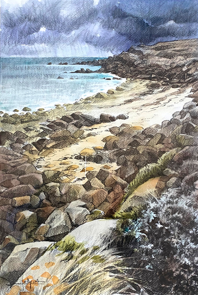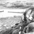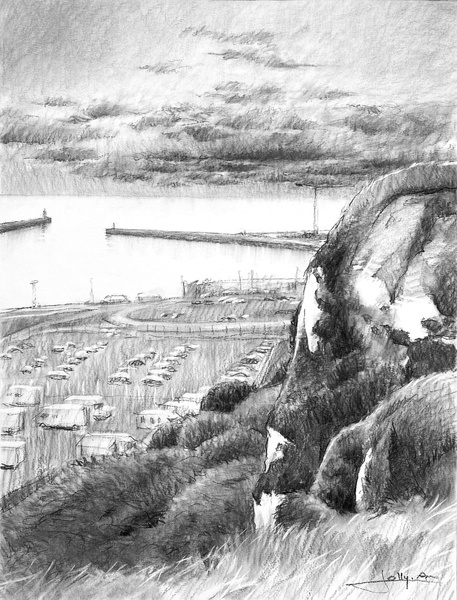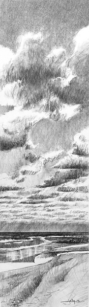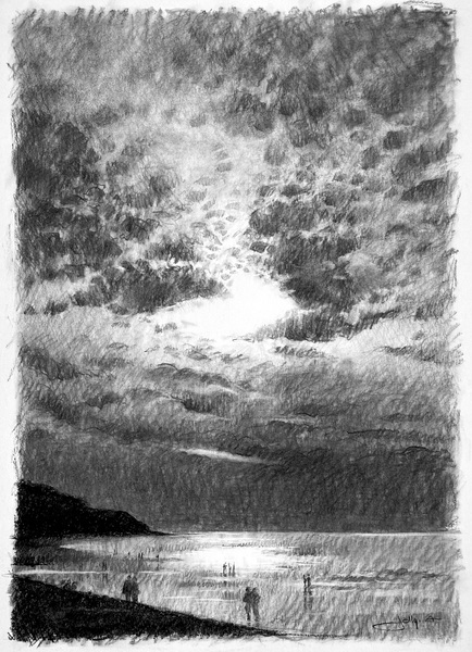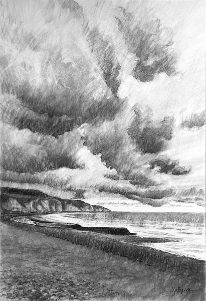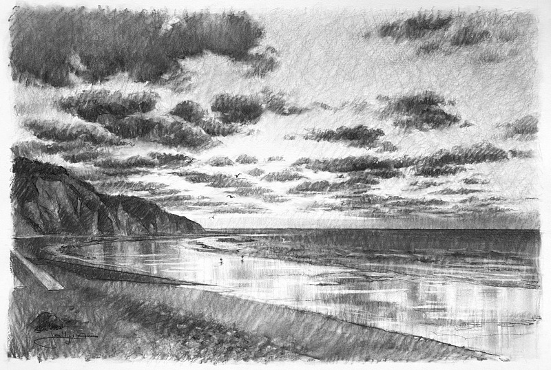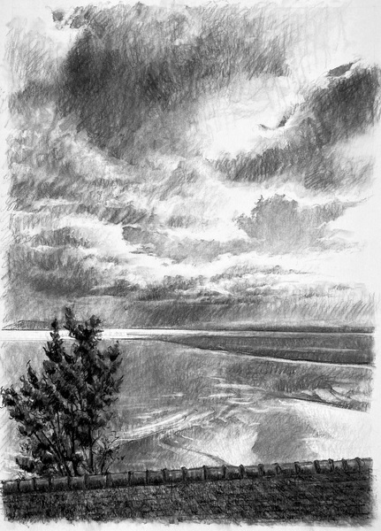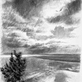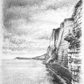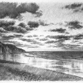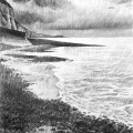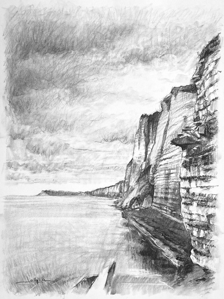 Dessins au fusain de paysages du littoral normand sur papier blanc